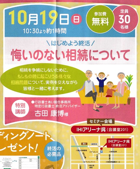 9月21日 日曜日、呉市体育館(IHIアリーナ呉)会議室において終活セミナーを開催しました。